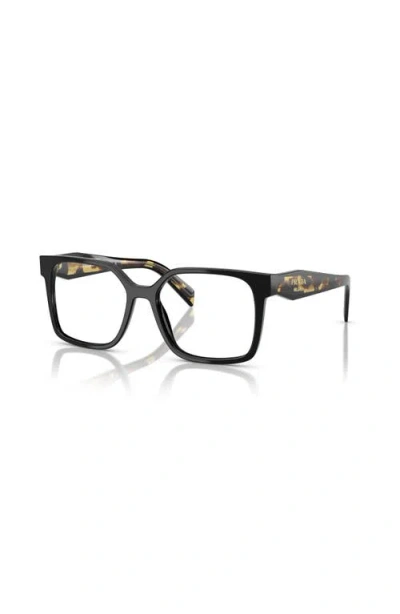 PRADA 52mm Rectangle Optical Glasses In Black