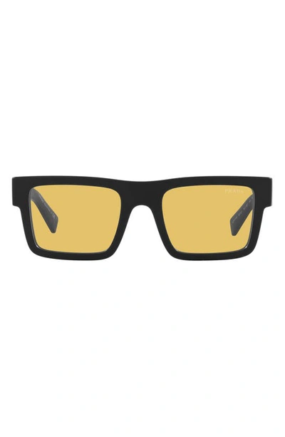 PRADA 52mm Rectangular Sunglasses In Matte Black