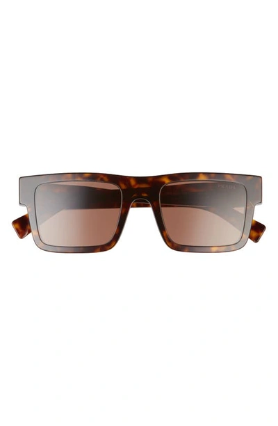 PRADA 52mm Rectangular Sunglasses In Tortoise/ Dark Brown