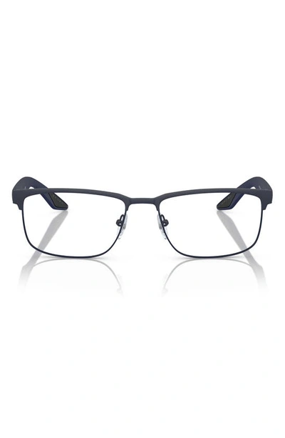 PRADA 56mm Rectangular Optical Glasses In Blue Rubber