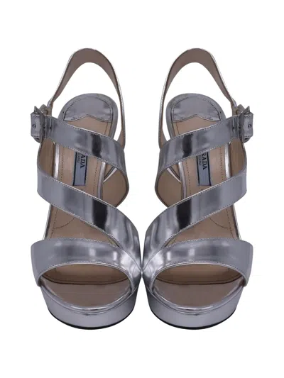 Pre-owned Asymmetric Strap Platform Sandal Heels In Silver