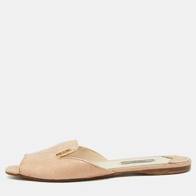 Pre-owned Beige Python Flat Slide Sandals Size 39