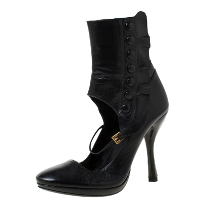 Pre-owned Black Leather Mary Jane Ankle Boots Size 37
