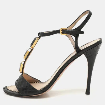 Pre-owned Black Python Embellished Ankle Strap Sandals Size 40