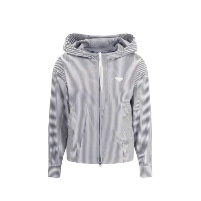 Description:– Composition: 55% Polyamide 45% Polyester – Long sleeves – Drawstring hood – Zip fastening – Two side welt pockets – Iconic triangular plaque on the front – Made in Italy – Gender: WOMEN –