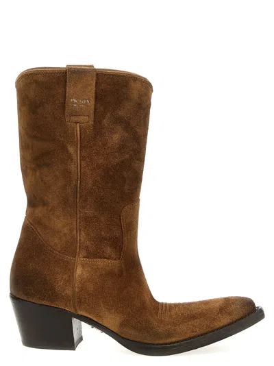 PRADA Texan Suede Boots Boots And Ankle Boots Brown