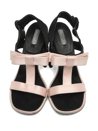 black and pink bow embellishment platform sole T-strap Your purchase will arrive to you in its original packaging. Condition: GOOD. This previously owned and used item is in good condition with minimal signs of use. This may include fading of material or plating and scratches.