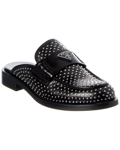PRADA Brushed Leather Mule In Black