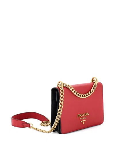 Pre-owned Chain Flap Bag Saffiano Leather Small Crossbody Bag In Black
