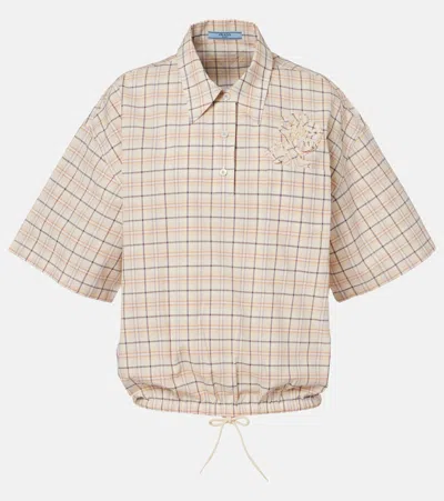 Material: 100% cotton. Care instructions: dry clean. Made in Italy. Designer color name: Naturale+Lilla. Cotton. Contains non-textile parts of animal origin. Collar: classic (Straight point). Closure: buttoned front. Hem: drawstring at the hem for an adjustable fit.