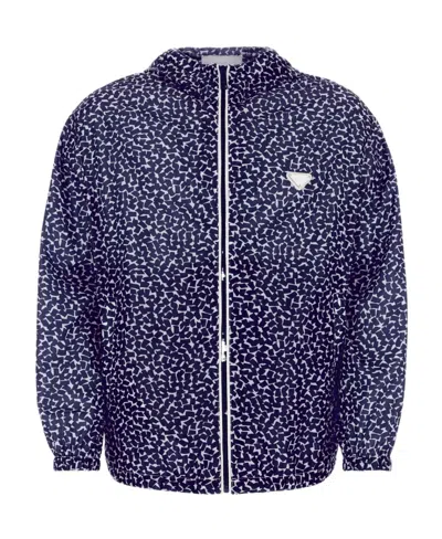 PRADA Chest Placement Patterned Lightweight Windbreaker In Blue
