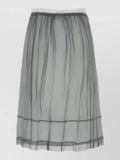 PRADA Chiffon Midi Skirt Sheer Embroidered Overlay In Gray