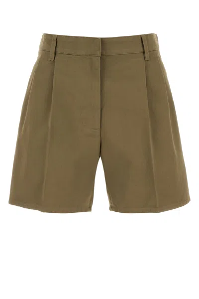 PRADA Cotton Shorts With Back Pockets And Front Pleats In Brown