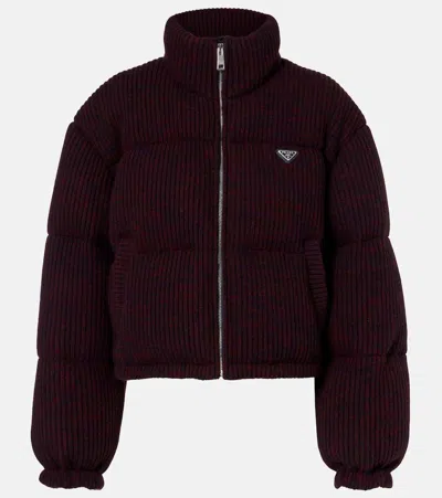 PRADA Cropped Wool And Cashmere Down Jacket In Burgundy
