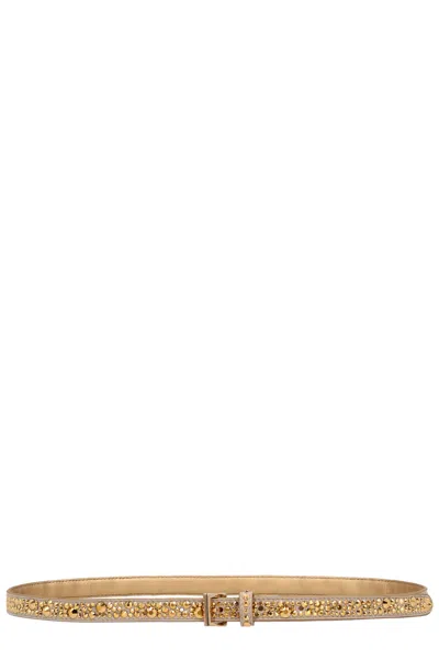Leather belt with crystal appliqués, adjustable strap.le strap. Composition: 100% goat leatherSize&Fit: H 1.5 cm