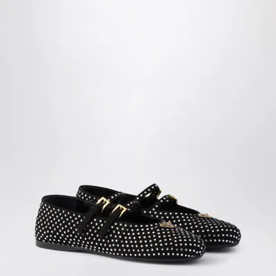 PRADA Black Velvet Rhinestone Ballerina With Logo Triangle Women In Silver