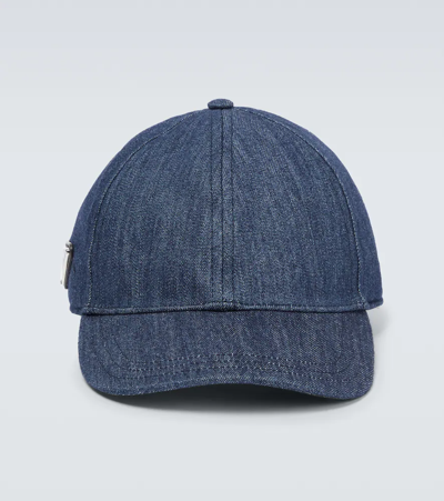 Made in Italy from cotton denim, this baseball cap from Prada features a six panel design with the brand's signature enamel triangle logo to the side.