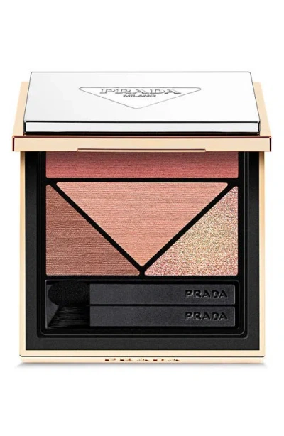 What it is: A refillable eyesight palette with a combination of three sophisticated neutrals and a single eccentric accent shade in four dynamic finishes. What it does: The refillable eyeshadow palette is created using a low-pressure injection process with Micro-Pixel pigments, which deliver one-stroke color payoff with high color resolution. The hybrid creamy-powder finish eyeshadows blend without fallout. Their skin affinity provides weightless comfort and 12 hours of durable, longlasting wear. Infused with plukenetia volubillis oil, Prada Dimensions offers a seamless glide-on application and gives eyelids a smoother look after 28 days of daily use. A true invitation to explore all of your dimensions and to experiment with endless combinations of easy-to-wear, easy-to-dare eye looks with maximal color expression. The refill allows for 75% less packaging use when compared to repurchasing a full eyeshadow palette. How to use: Push the triangle on the back of the eyeshadow palette to eject the refill. Peel off the protective paper from the adhesive tape on the back of the new refill. Seal the new refill in your Prada palette by pressing down gently. Made in France