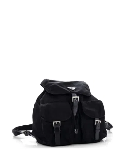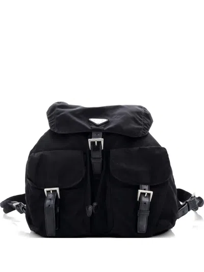 Pre-owned Double Front Pocket Tessuto Medium Backpack In Black