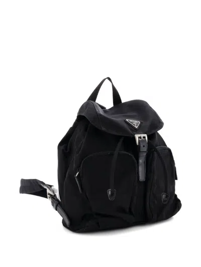 Pre-owned Double Front Pocket Tessuto Small Backpack In Black