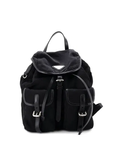 Pre-owned Double Front Pocket Tessuto Small Backpack In Black