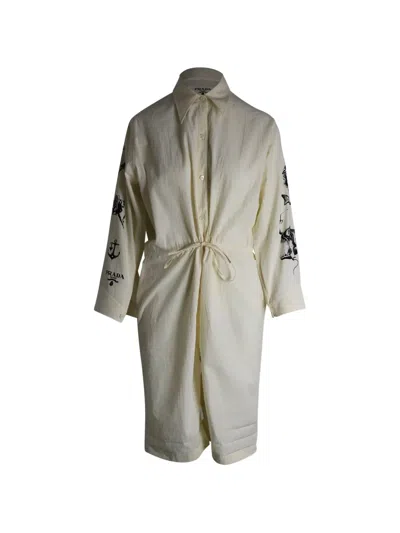 white cotton drawstring button closure long sleeves Condition: EXCELLENT. This previously owned item is in near-perfect condition with no signs of damage or use.