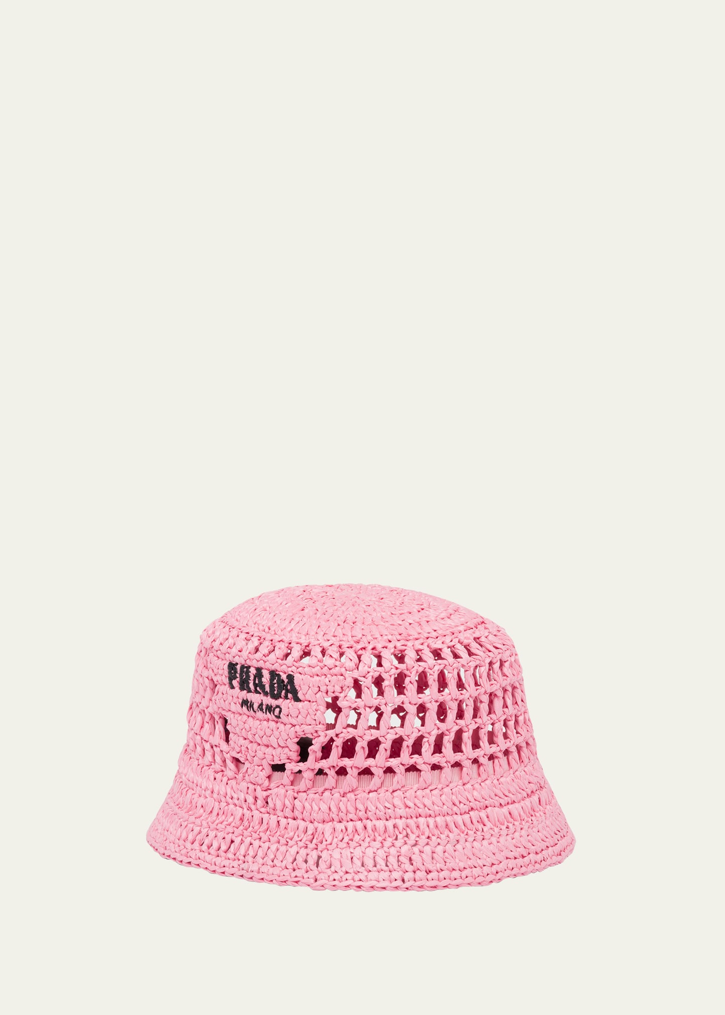 PRADA Embroidered-logo Raffia Bucket Hat In Pink