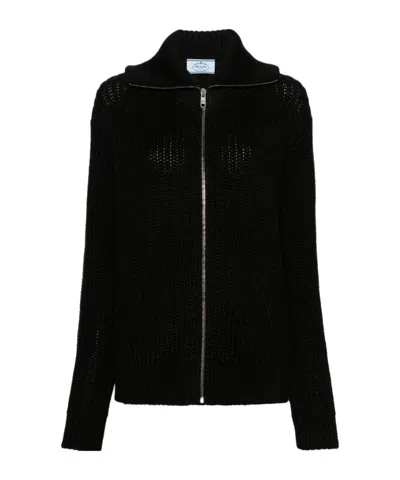 PRADA Enamel Triangular Zipper Sweater In Black