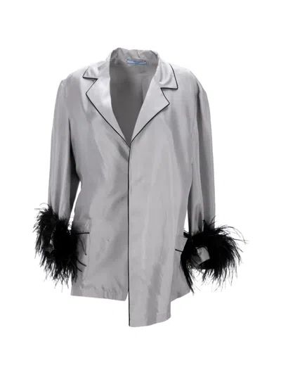 Pre-owned Feather-cuff Jacket In Gray