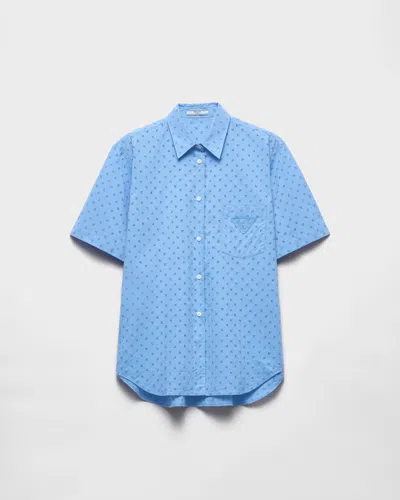 Prada floral eyelet shirt is elegantly finished with the tonal triangle logo Classic collar Front button closure Short sleeves Patch pocket Menswear fit Rounded hem Cotton Dry clean, professional cleaning recommended Made in Romania
