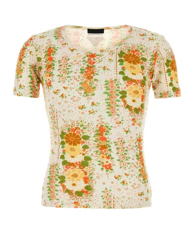 PRADA Floral-pattern Crew-neck T-shirt In Multi