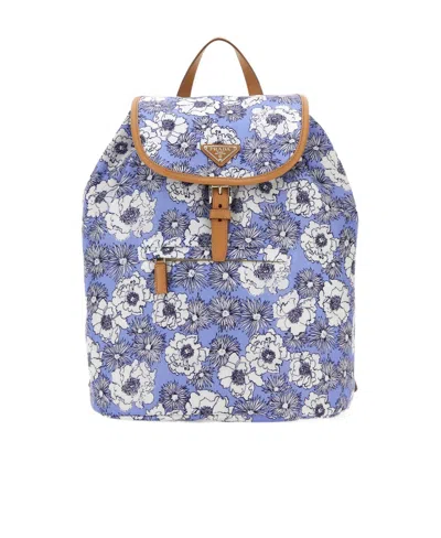 PRADA Floral-print Backpack In Blue