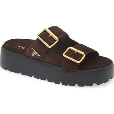 PRADA Fussbett Flatform Slide Sandal In Brown