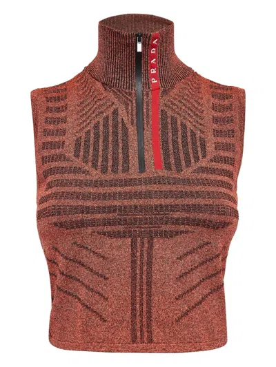 Pre-owned Geometric-pattern Knitted Top In Orange