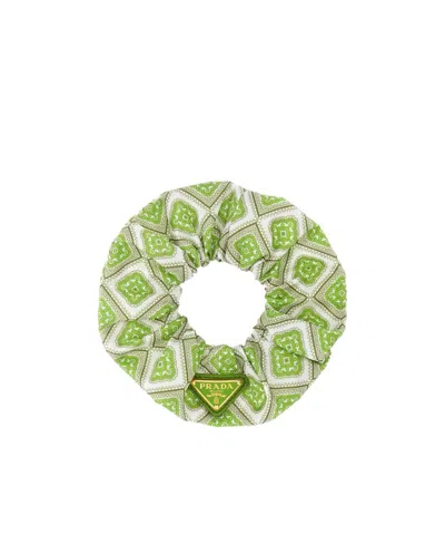 PRADA Geometric Twill Twist Scrunchie In Multi