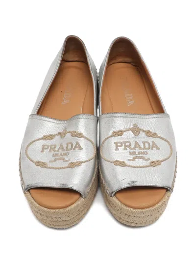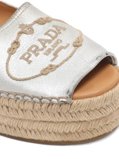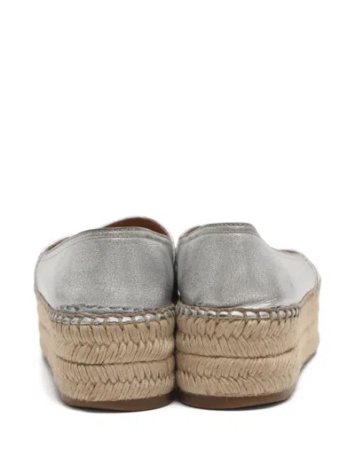 silver leather jute platform open toe slip-on style Condition: GOOD. This previously owned and used item is in good condition with minimal signs of use. This may include fading of material or plating and scratches.