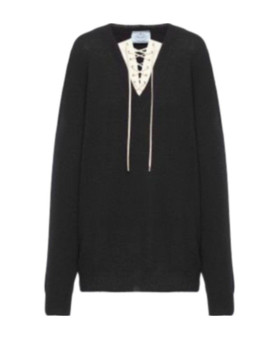 PRADA Knit Pullover With Logos In Black
