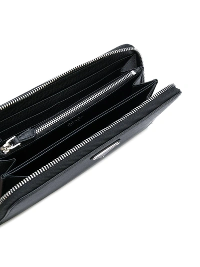Founded in 1913 by Mario Prada, the brand is known for producing timeless items with traditional Milanese craftsmanship. Expect to see outerwear with a utilitarian twist and vibrant accessories that have amassed a cult following. Sculpted in Italy from Prada's signature black Saffiano leather, this classic wallet features a zip fastening, a front logo plaque, multiple interior card slots, note compartments and a zipped coin pouch.