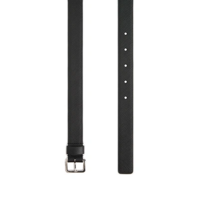 Width: 2.3 cm (0.9 in) Buckle fastening Grained leather - This minimalist leather belt is from the Resort 2022 collection by Prada. This slim piece has a sleek look designed to add a classic and chic touch to any wardrobe. A cult piece. Size: - Closure: - Appearance: