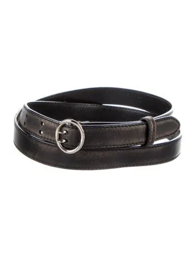 Prada Belt Brown Leather Silver-Tone Hardware Buckle Closure Unfortunately, due to restrictions, this item may not be eligible for shipping in all areas. | Prada Leather Belt in Brown, Women's S