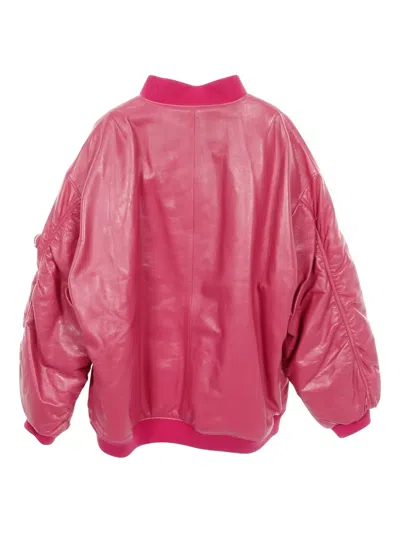 Pre-owned Leather Bomber Jacket In Pink