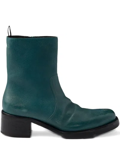 PRADA Leather Booties In Blue