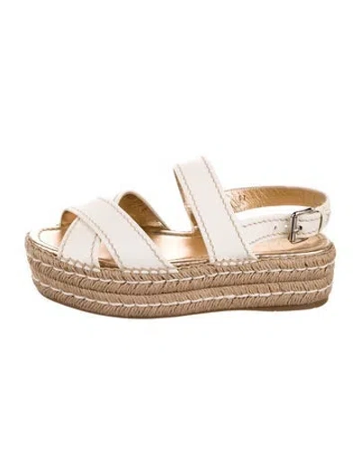Prada Leather Espadrilles White Jute Trim Platform Crossover Straps & Buckle Closure at Ankles Designer Fit: Sandals by Prada typically run a half size small. Unfortunately, due to restrictions, this item may not be eligible for shipping in all areas. | Prada Leather Espadrilles in White, Women's IT 37 | 7