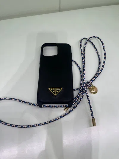 PRADA Leather Iphone 16 Pro Max Case In Black