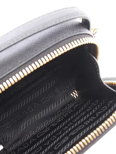 black saffiano leather chain-link shoulder strap single top handle top zip fastening gold-tone hardware main compartment