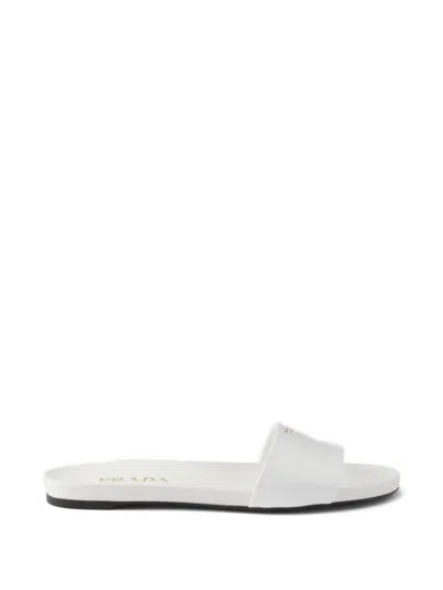 PRADA Leather Slide Sandals Open Toe Flat Sole In White