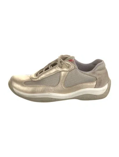 Prada Leather Low Top Sneakers Gold & Metallic Square-Toes Lace-Up Closure at Uppers Fit: Sneakers by Prada typically run large, consider taking a half size down. Unfortunately, due to restrictions, this item may not be eligible for shipping in all areas. | Prada Leather Sneakers in Gold/Metallic, Women's IT 36.5 | 6.5