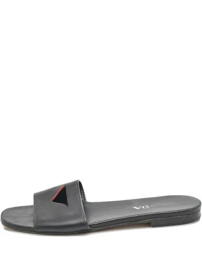 Pre-owned Leather Triangle Slide Sandals