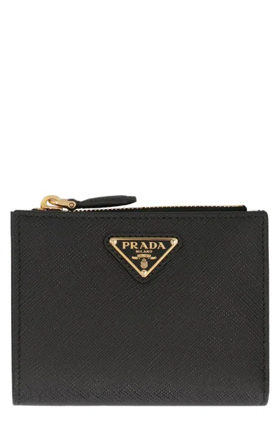 Leather walletSaffiano leather itemSnap button closureZippered coin pocketBill compartmentEight card slotsGold-tone metal hardwareLeather liningWidth: 11 cmHeight: 10 cmDepth: 1 cm100% Calf