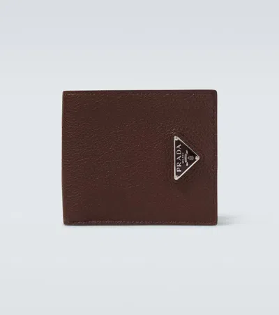 PRADA Logo Bi-fold Leather Wallet In Brown